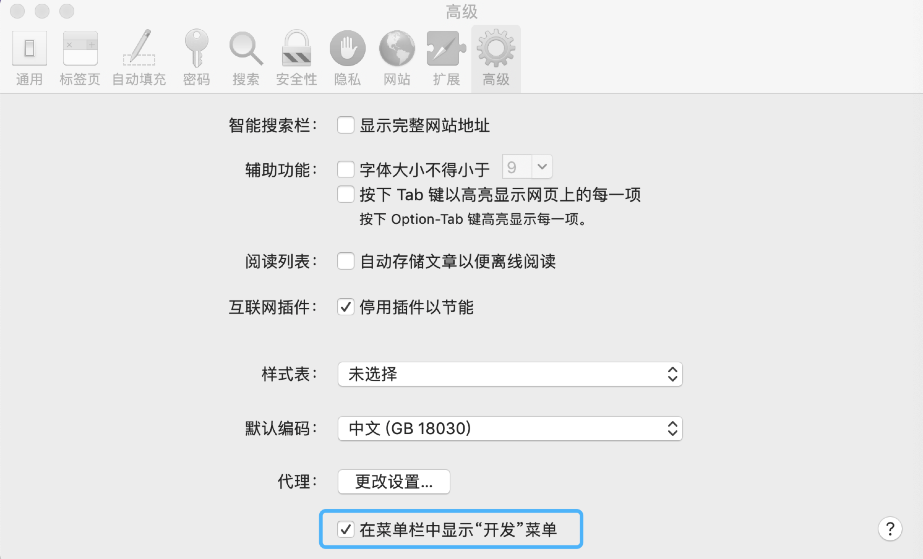 菜单 -> Preferences(偏好设置) -> Advanced(高级)