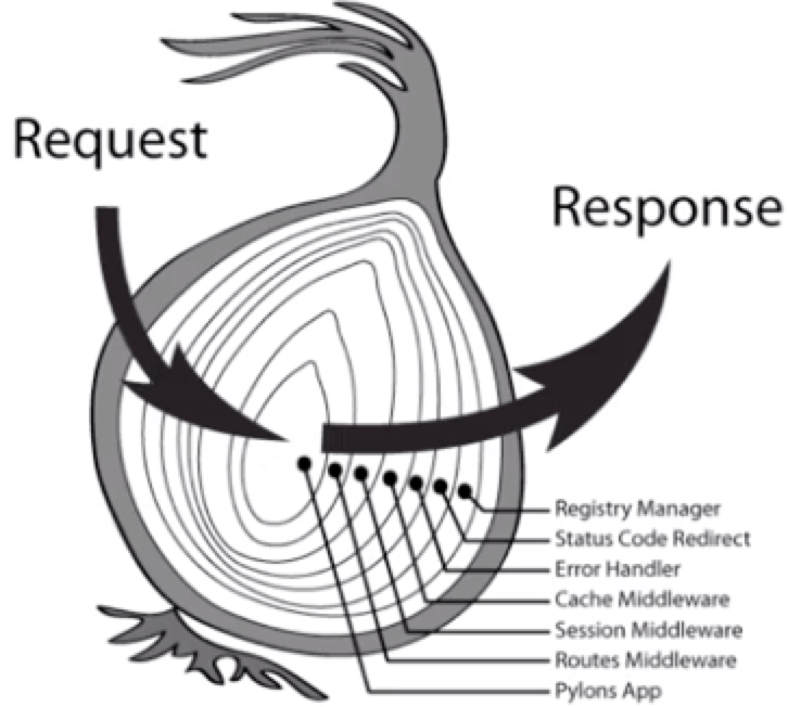 请求一层层的进入,一层层的退出,也就是说先进的后出,后进的先出