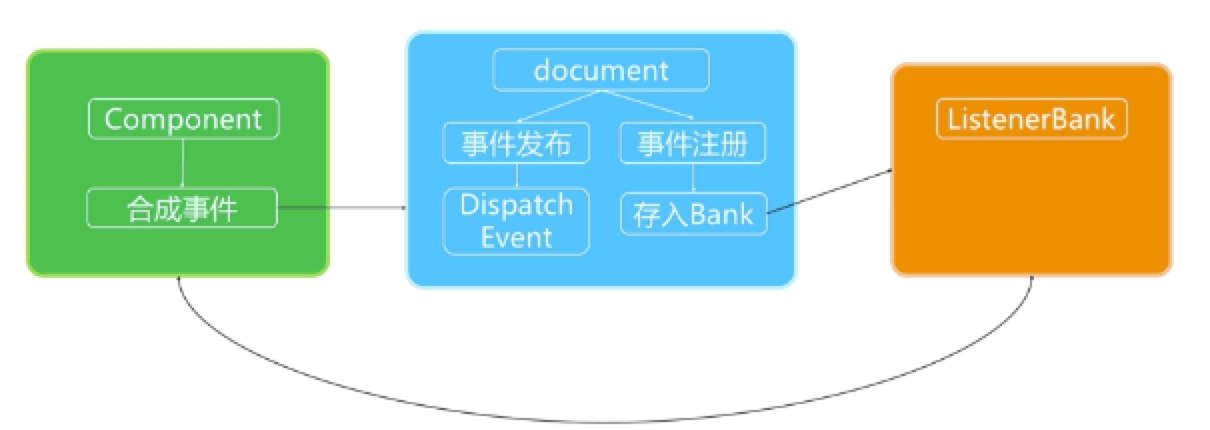 react会将所有的事件都绑定到document上,而不是某个元素上面,统一的使用事件监听,并在冒泡阶段处理事件,当挂载和卸载组件的时候 只需在统一的事件监听位置,增加或删除对象,因此极大的提高效率;当事件触发的时候,我们的组件会生成一个合成事件,然后传递到documennt中,doucument会通过DispatchEvent回调函数依次执行DispatchEvent中同类型的事件监听函数,事件注册是在组件生成的时候,我们将vDom中所有的事件的原生事件documennt中的一个监听器当中,也就是所有的事件处理函数都存在ListenerBank中 并以key作为索引,这样的好处是将可能要触发的事件分门别类。